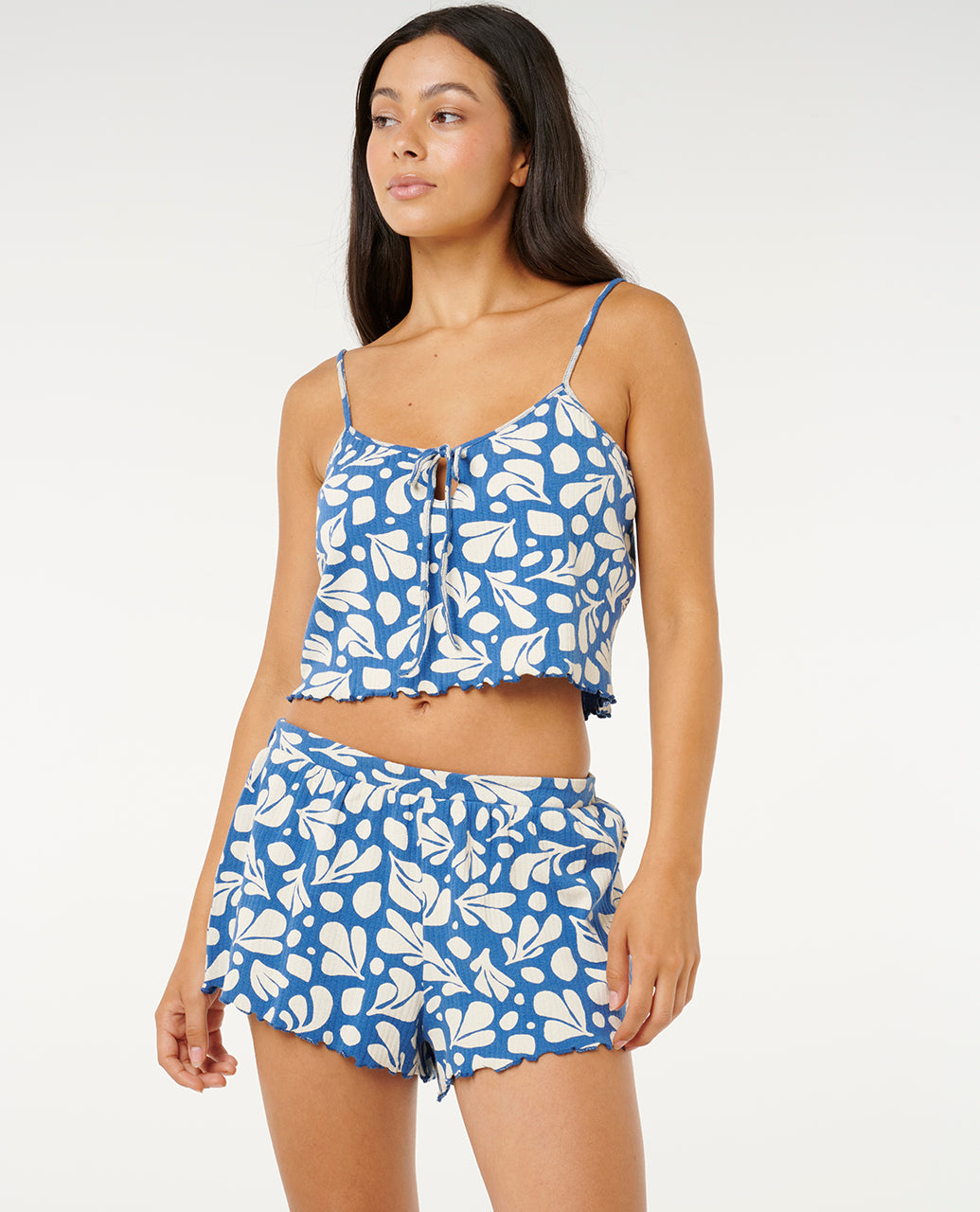 Surf Dreams Printed Rib Short sits mid-rise with elastic waistband and garment wash, delivering that soft, fitted feel.