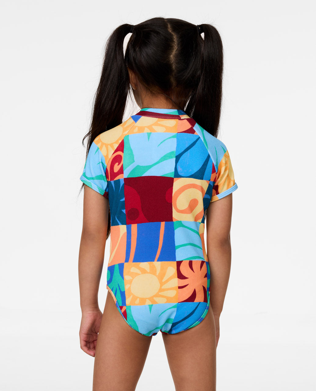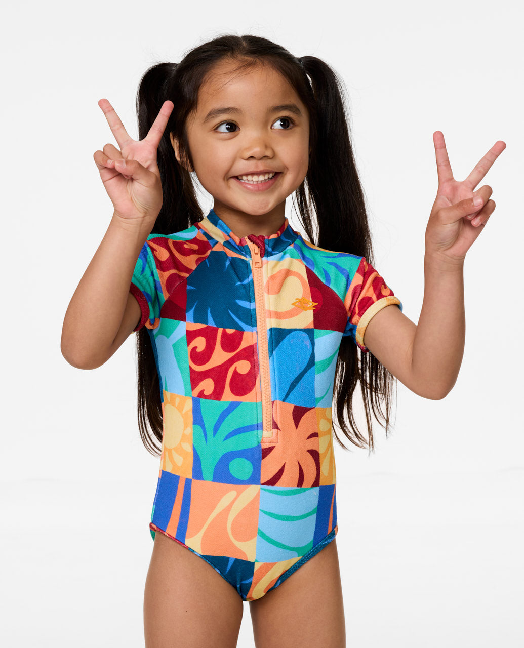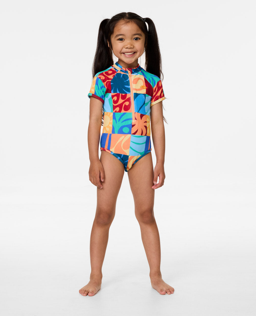 The Artist of the Search TY Short Sleeve Suit brings a bold surf vibe with an all-over yardage print and screen-printed logo. Featuring a front zip, fitted cut, and chlorine-friendly stretch fabric, this piece is fully lined for comfort and all-day wear.